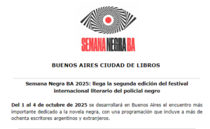 A partir de hoy 1 de octubre y hasta el sábado 4 se llevará a cabo la segunda edición de la Semana Negra BA, el principal festival de literatura policial de la región. La inauguración oficial será a las 18:00 en la Casa de la Cultura porteña (Avenida de Mayo 575), con la participación de Paco Ignacio Taibo II y Jorge Fernández Díaz.